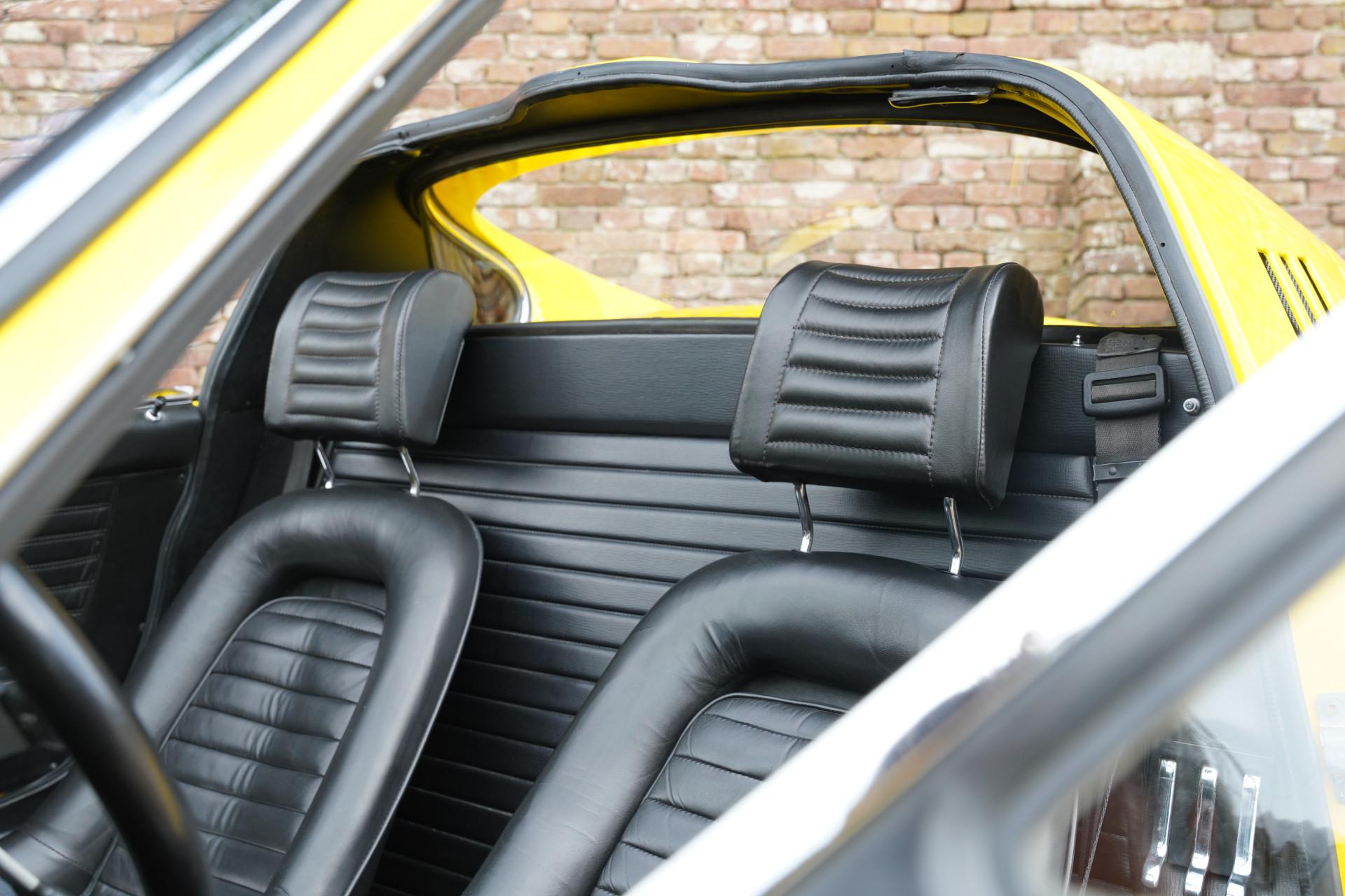 This particular example, delivered new in Switzerland in 1973, is part of a rare group of just 401 European-spec GTS models. And that's before we even mention its original color combination: Giallo Fly over Nero leather. A pairing that perfectly reflects the car's character—bold yet refined.