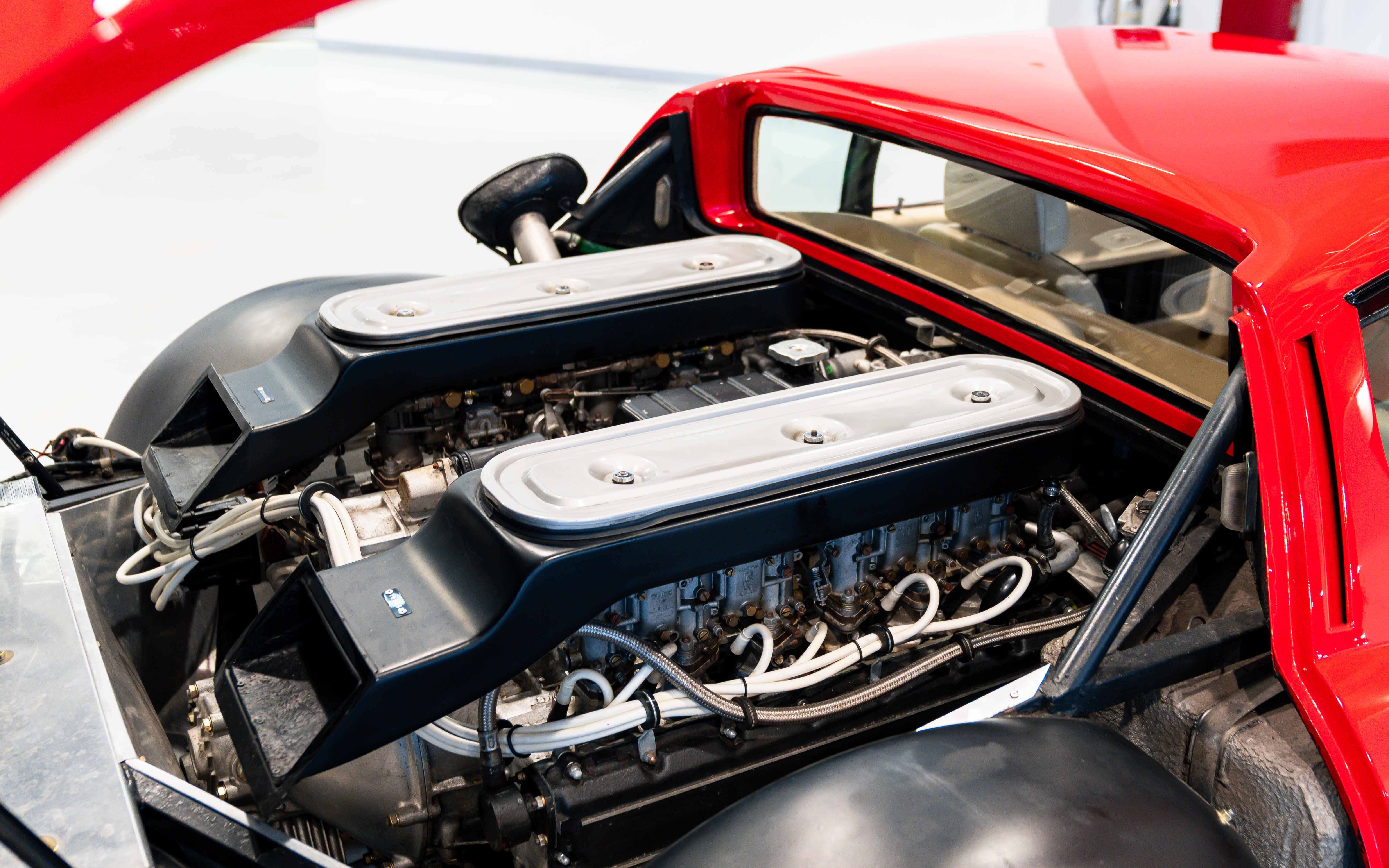 At its core lay a 4,390 cc Tipo F102 A 180-degree V12, often described as a “flat-12”, fed by four triple-choke Weber carburettors and producing circa 344 bhp at 7,000 rpm, transmitted through a five-speed rear transaxle. This sophisticated drivetrain, mounted longitudinally, endowed the 365 GT4 BB with formidable performance for its era, alongside a notably low centre of gravity. Chassis construction remained conventionally tubular, clothed in steel bodywork, while independent suspension and four-wheel disc brakes ensured suitably modern road manners. Though superseded by the 512 BB in 1976, the 365 GT4 BB is today regarded as the purest expression of the Boxer concept, combining early carburetted character, limited production, and landmark engineering significance within Ferrari’s evolving mid-engined V12 lineage.