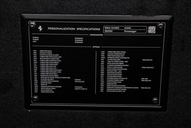 Ferrari Purosangue- FERRARI CERTIFIED PRE-OWNED - AVAILABLE EXTENDED FERRARI WARRANTY -- Rosso Maranello over Terra Bruciata - ONE OWNER - Very Low Miles - Excellent Condition - Many Fine Options - Expertly Maintained by Our Factory Trained Technicians - Ferrari Factory Warranty to 8/10/27 - Complimentary Ferrari Genuine Maintenance Service to 8/10/31 -Factory Options:- Special 4-Layer Paint Color- Airbrushed Scuderia Ferrari Shields- Design Specification- Suspension Lifter- Carbon Fiber Wheelhouse Flares- Carbon Fiber Front Spoiler- Carbon Fiber Rear Diffuser- Carbon Fiber Underdoor Covers- Carbon Fiber Outer Mirrors- Carbon Fiber Copper Insert- Carbon Fiber Wheel Caps- Carbon Fiber LED Steering Wheel- Carbon Fiber Instrument Cover- Carbon Fiber Inner Door Handles- Carbon Fiber Door Panels- Carbon Fiber Upper Center Console- Carbon Fiber Exterior Sill Kicks- Carbon Fiber Vehicle Key- Forged Diamond Wheels- Wheel Bolts in Titanium- Gloss Black Brake Calipers- Leather Upholstery in Terra Bruciata- Colored Steering Wheel in Terra Bruciata- Colored Upper Dashboard in Terra Bruciata- Leather Upper Part in Terra Bruciata- Front Ventilated Seats with Massage- Rear Heated and Ventilated Seats- Heated Steering Wheel- Cavallino Stitched to Headrests in Argento Chiaro- Special Stitching in Nero- Colored Seatbelts in Marrone- Panoramic Roof- High-End Audio System- Smartphone Interface- Wireless Smartphone Charger- Active Matrix LED Headlights- Digital Rearview Mirror- Surround View- Black Tailpipe Tips- Aluminum Driver and Passenger Footrests- Luggage Compartment Kit- Air Quality SensorIf you are in the market for a Ferrari Purosangue, please call or email us today.This Ferrari has passed a multi-point inspection performed by our factory trained technicians, and has been enrolled in the Ferrari Approved Certified Pre-Owned Program. The Certified program makes available up to two years of additional Ferrari Power Approved Warranty coverage. Please see dealer for more details.