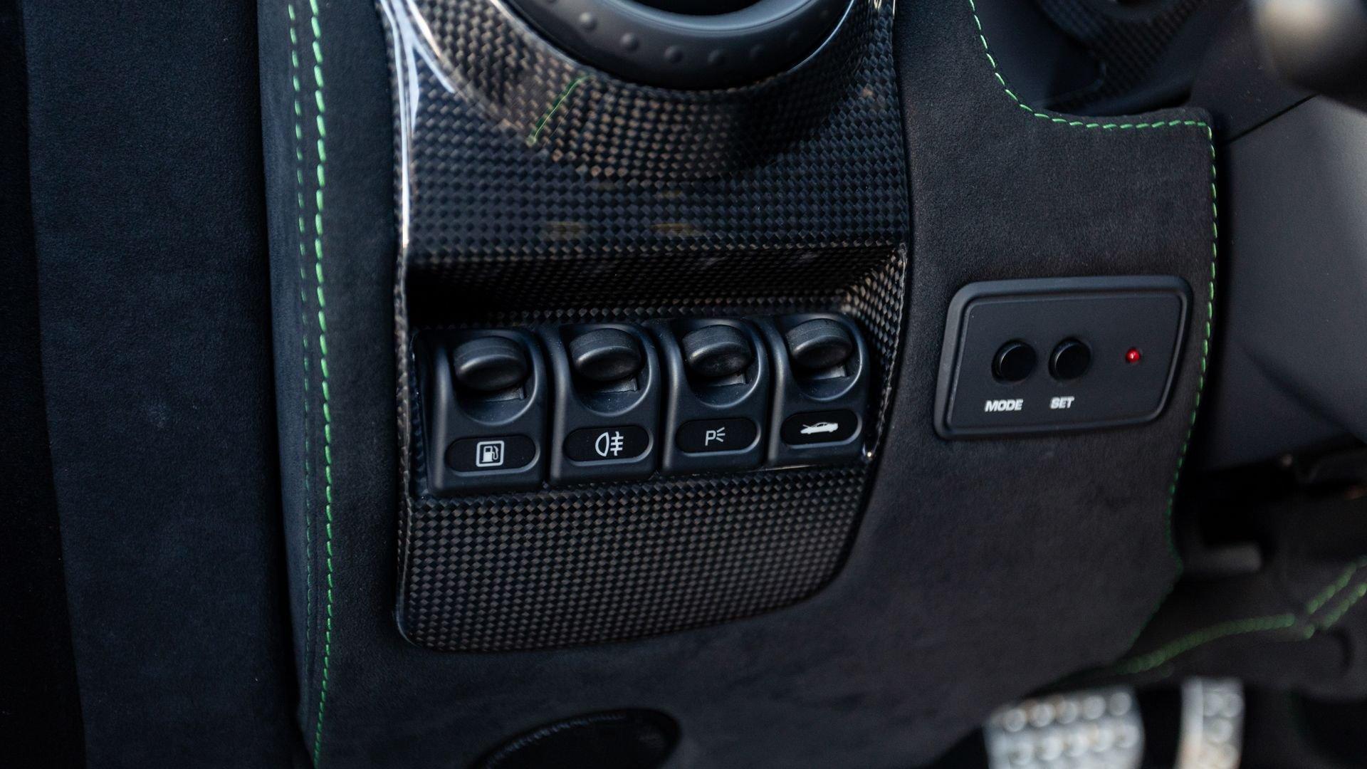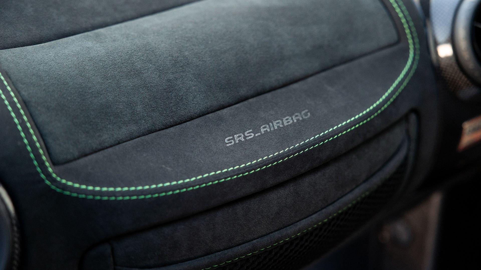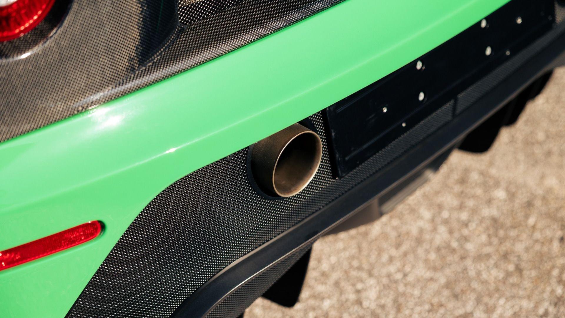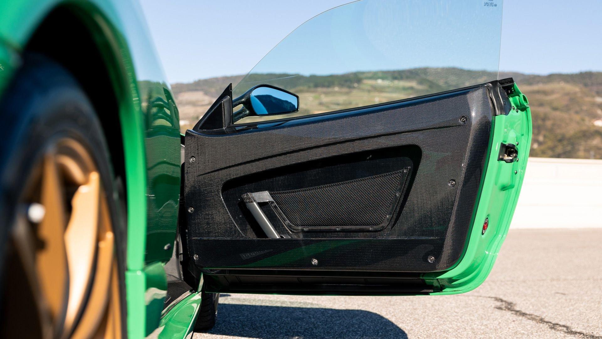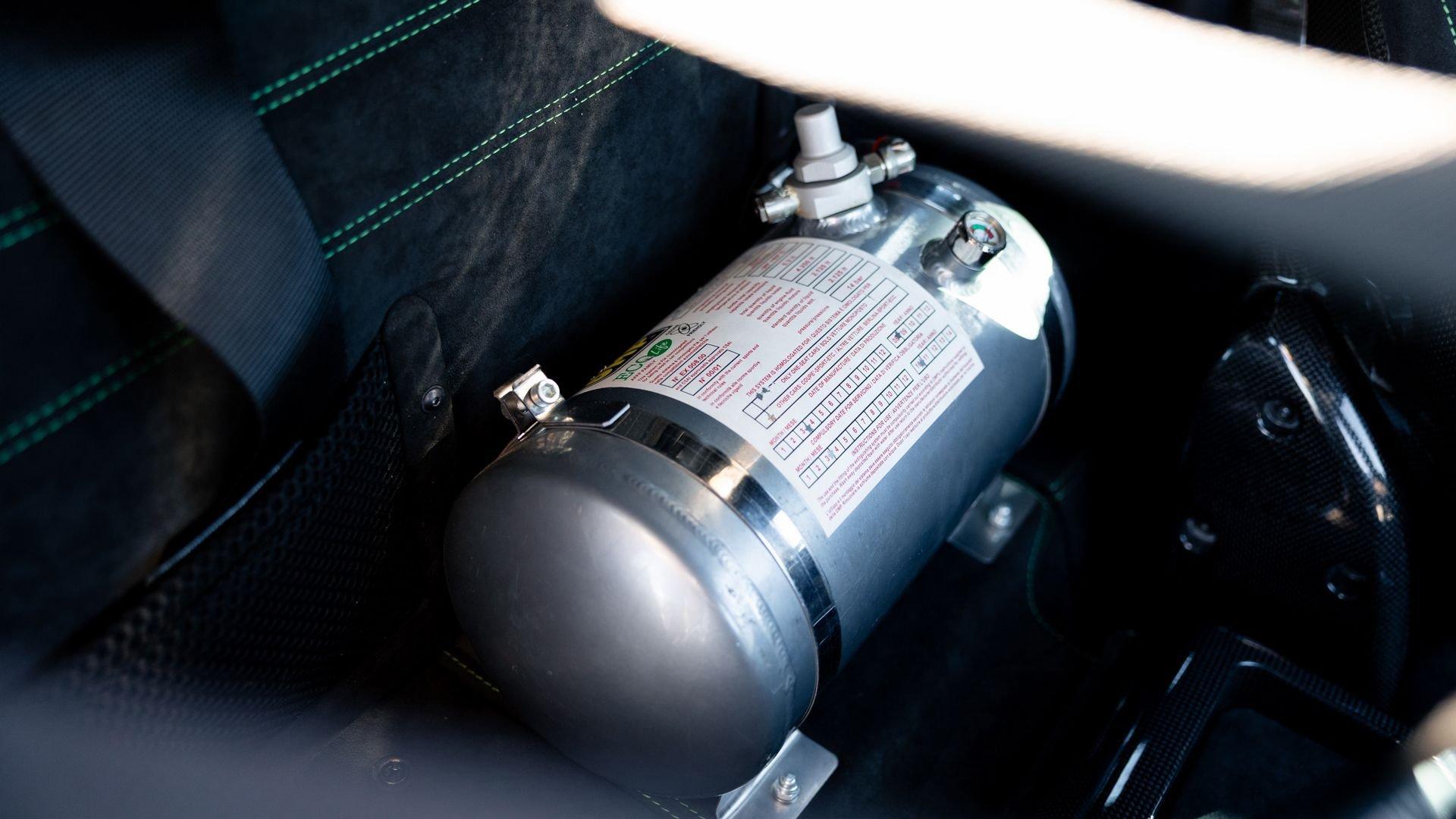This stunning 430 Scuderia was ordered new through Ferrari dealer Lumani Krüger in Germany, with its original November 2007 order form specifying the car in Porsche Grün over Tessuto Nero. It is thought to be the only example of its type finished in this shade, specified by its paint sticker as Verde PPG (159331), supplied by PPG Industries. The vibrant paint was paired with equally striking Gold racing stripes running the length of the car and Gold-finished 19-inch alloy wheels for one of the most striking Scuderia specifications imaginable. The invoice also records a lavishly equipped example from new, including four-point harnesses, a rollover bar, carbon-fiber front and rear elements, carbon entry sills, a carbon LED steering wheel, an Alcantara-trimmed steering wheel and handbrake lever, Verde deviated stitching throughout, a satellite alarm, and a silver dedication plaque, inscribed “Raja & Andy.” In total, the car was ordered with over €41.000 in options-a considerable sum for the period, when the palette of personalization choices was far narrower than it is today.