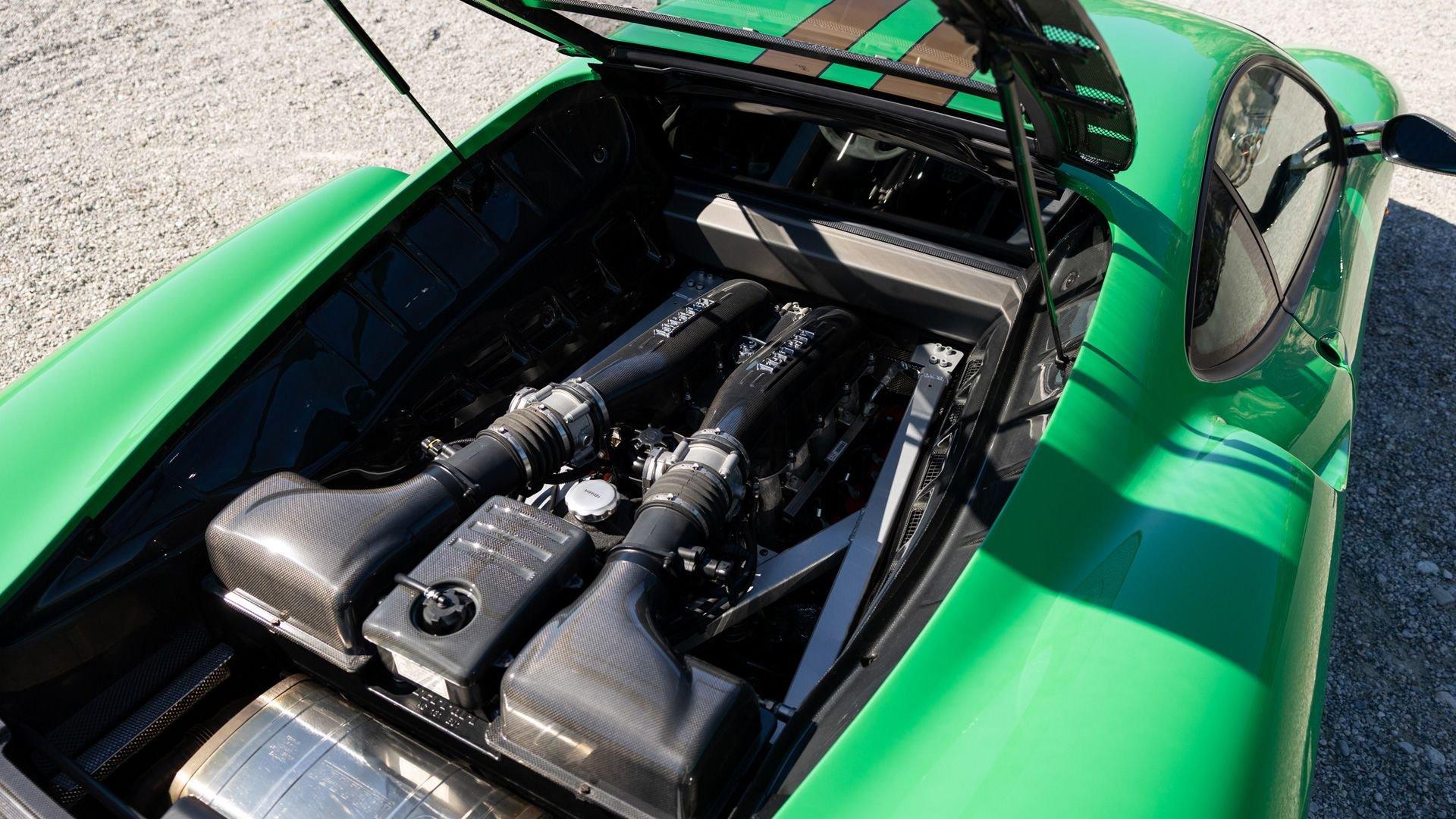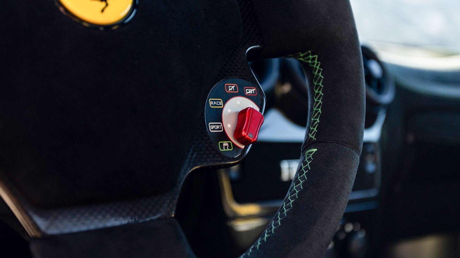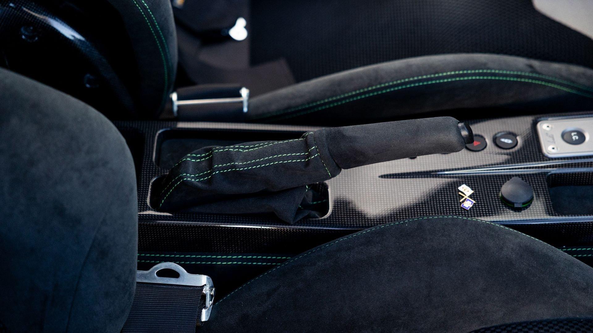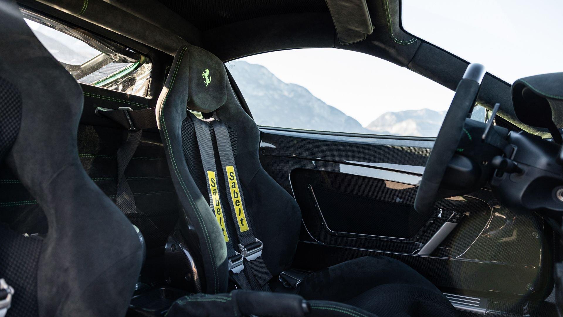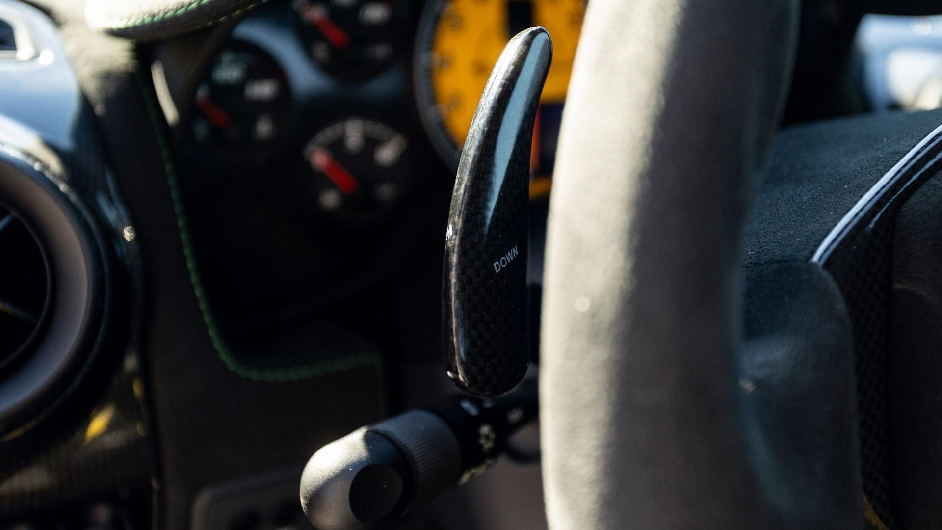 This stunning 430 Scuderia was ordered new through Ferrari dealer Lumani Krüger in Germany, with its original November 2007 order form specifying the car in Porsche Grün over Tessuto Nero. It is thought to be the only example of its type finished in this shade, specified by its paint sticker as Verde PPG (159331), supplied by PPG Industries. The vibrant paint was paired with equally striking Gold racing stripes running the length of the car and Gold-finished 19-inch alloy wheels for one of the most striking Scuderia specifications imaginable. The invoice also records a lavishly equipped example from new, including four-point harnesses, a rollover bar, carbon-fiber front and rear elements, carbon entry sills, a carbon LED steering wheel, an Alcantara-trimmed steering wheel and handbrake lever, Verde deviated stitching throughout, a satellite alarm, and a silver dedication plaque, inscribed “Raja & Andy.” In total, the car was ordered with over €41.000 in options-a considerable sum for the period, when the palette of personalization choices was far narrower than it is today.
