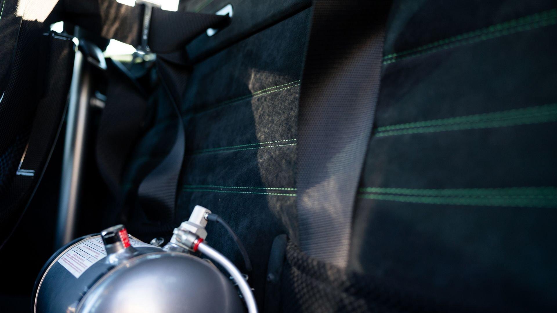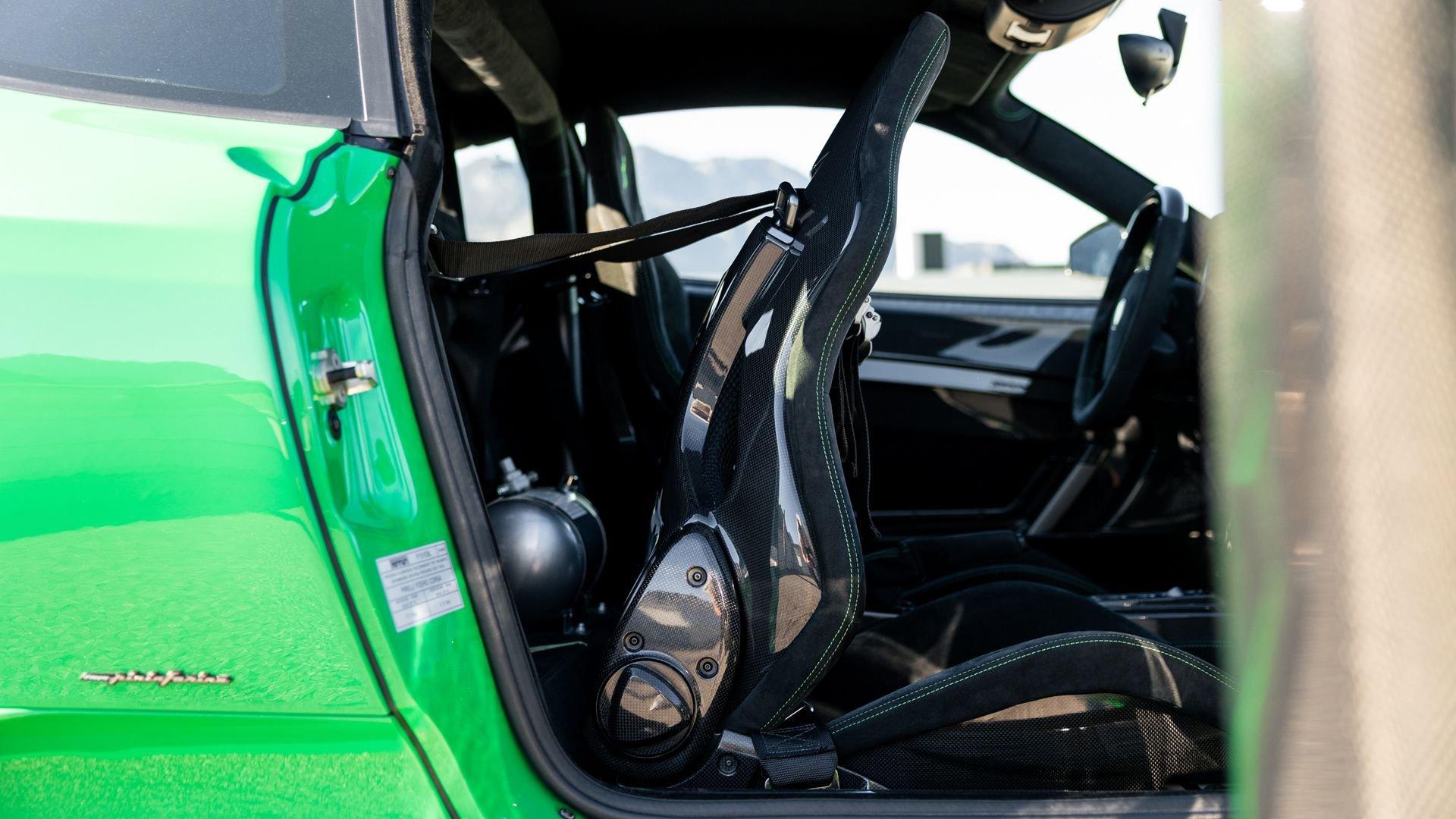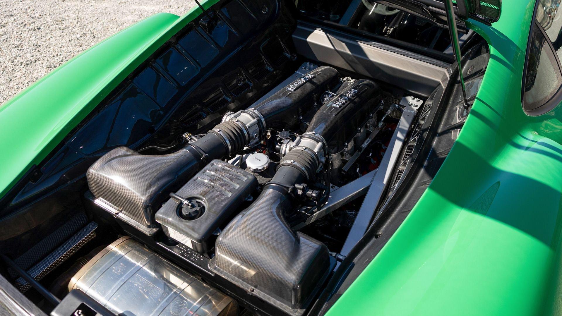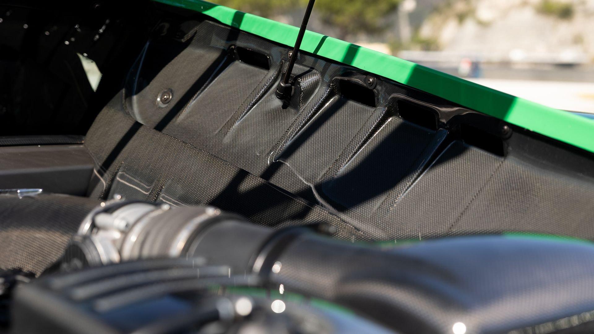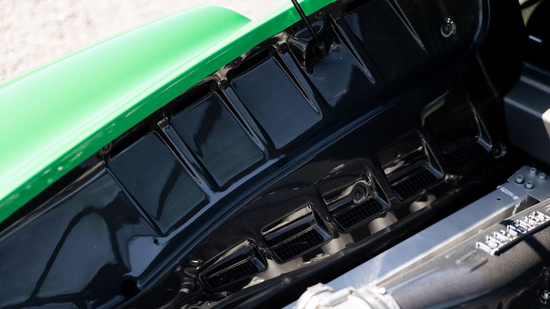 This stunning 430 Scuderia was ordered new through Ferrari dealer Lumani Krüger in Germany, with its original November 2007 order form specifying the car in Porsche Grün over Tessuto Nero. It is thought to be the only example of its type finished in this shade, specified by its paint sticker as Verde PPG (159331), supplied by PPG Industries. The vibrant paint was paired with equally striking Gold racing stripes running the length of the car and Gold-finished 19-inch alloy wheels for one of the most striking Scuderia specifications imaginable. The invoice also records a lavishly equipped example from new, including four-point harnesses, a rollover bar, carbon-fiber front and rear elements, carbon entry sills, a carbon LED steering wheel, an Alcantara-trimmed steering wheel and handbrake lever, Verde deviated stitching throughout, a satellite alarm, and a silver dedication plaque, inscribed “Raja & Andy.” In total, the car was ordered with over €41.000 in options-a considerable sum for the period, when the palette of personalization choices was far narrower than it is today.